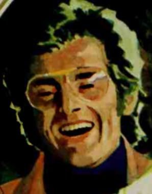 The hero looks nothing like that photo, for what it’s worth. He has a disfiguring scar, for one thing, and there’s no mention of glasses nor of him looking like the doppelganger of Engelbert Humperdinck.